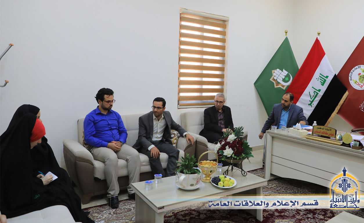 A delegation from Alhamdaniya University, which is located in Nineveh city, visited the University of Warith Alanbiyaa. The delegation was consisted from the scientific assistance Dr.  Kazal Yassin, the head of scientific affairs department Dr. Jasim Mohammed Rajab and from El-Shaykh Khair Al-Deen Al-Hadi. The delegation came to discuss the possible agreements and cooperation between the two universities, and was received by the acting President of the University Dr. Abbas al-Daami and some deans of colleges and heads of departments.