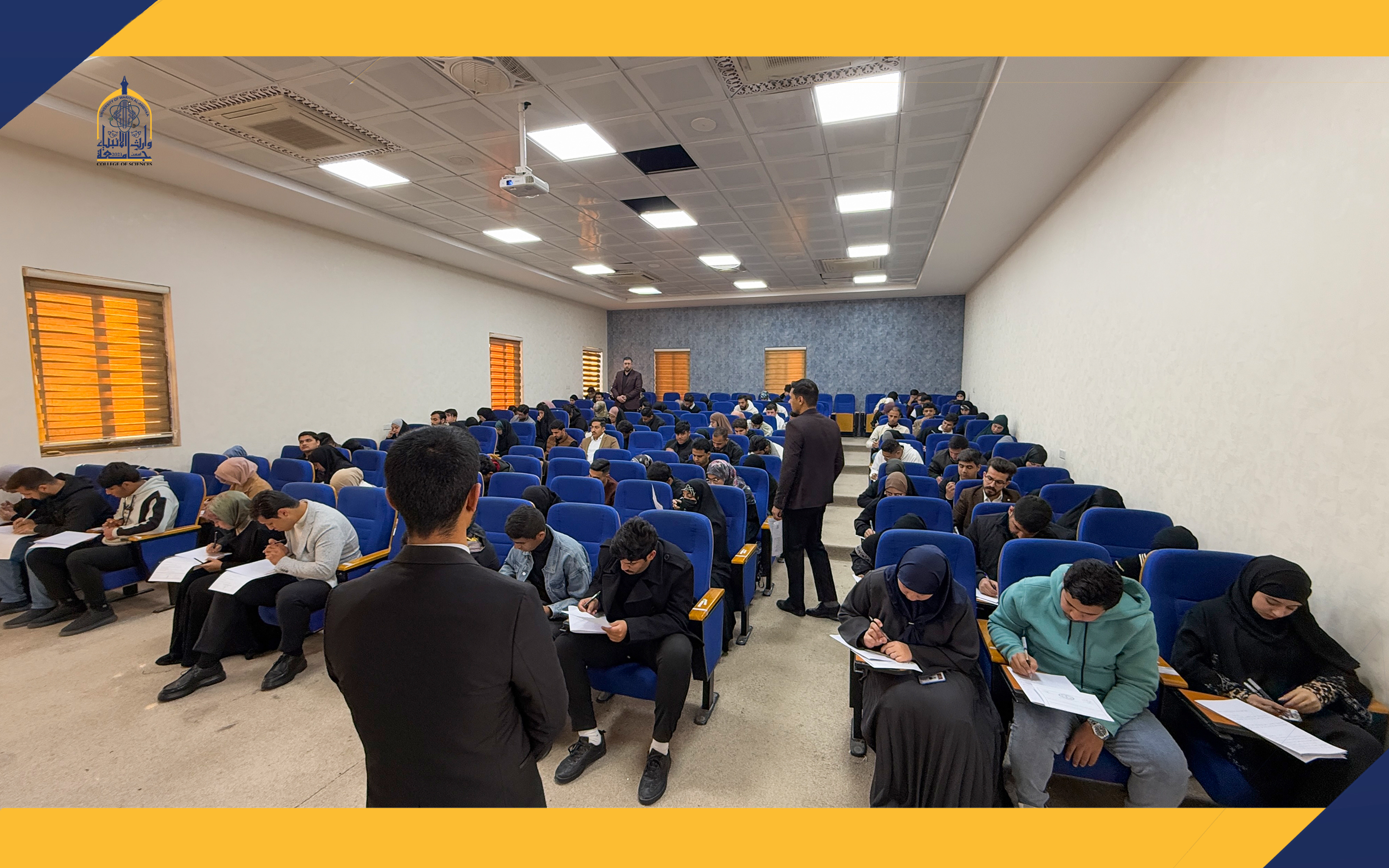 At the direction of the esteemed Dean of the College of Science, Assistant Professor Dr. Shaimaa Hussein Nofal, the College of Science at Warith Al-Anbiyaa University organized a cultural symposium titled "Building University Identity and Its Foundations," presented by the Dean of the College of Islamic Sciences, Assistant Professor Dr. Talal Al-Kamali. The symposium targeted the college students and highlighted the importance of university identity and its role in enhancing academic and cultural values among students.