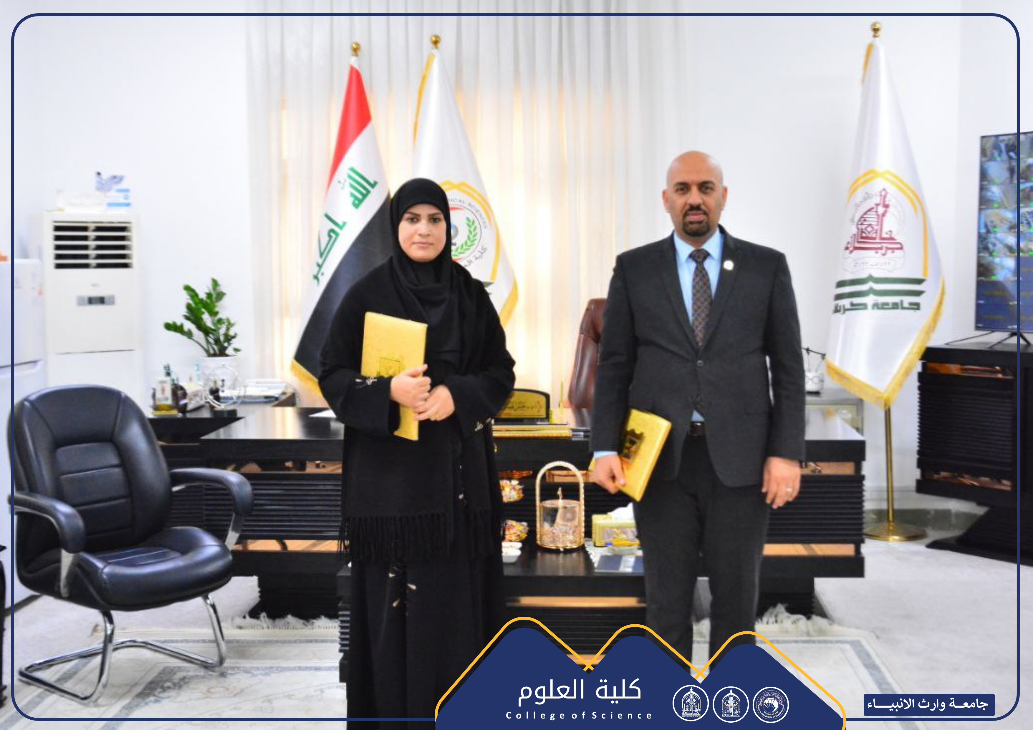 As part of strengthening academic cooperation and exchanging scientific expertise, Assistant Professor Dr. Shaimaa Hussein Nofal, Dean of the College of Science at Warith Al-Anbiyaa University (peace be upon him), signed a scientific twinning agreement with Assistant Professor Dr. Hassan Faisal Al-Yassari, Dean of the College of Applied Medical Sciences at the University of Karbala.