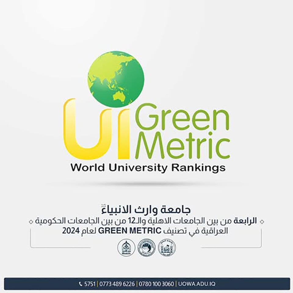 The University of Warith Al-Anbiyaa (PBUH) has achieved a significant academic milestone, ranking 4th among private universities in Iraq and 12th among all Iraqi universities in the prestigious UI Green Metric global ranking. This accomplishment reflects the university’s commitment to enhancing the quality of higher education and scientific research, solidifying its position among leading educational institutions.
