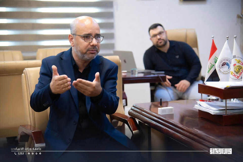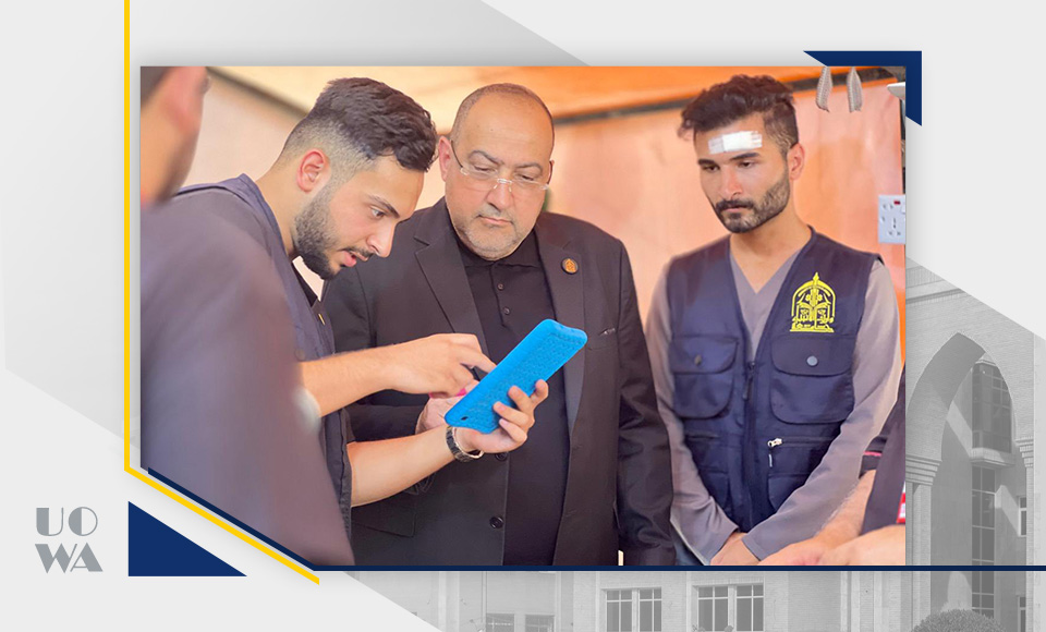 In its ongoing efforts to enhance digital infrastructure and improve safety and emergency response systems, the University of Warith Al-Anbiyaa (PBUH) has launched the first phase of its Civil Defense Early Warning Program. The launch took place during a meeting between the President of the University, Prof. Dr. Ibrahim Saeed Al-Hayawi, the Vice President of Academic Affairs, Prof. Dr. Waqed Al-Moussawi, and a delegation from the Media Department of the Holy Shrine of Imam Hussein (PBUH).
